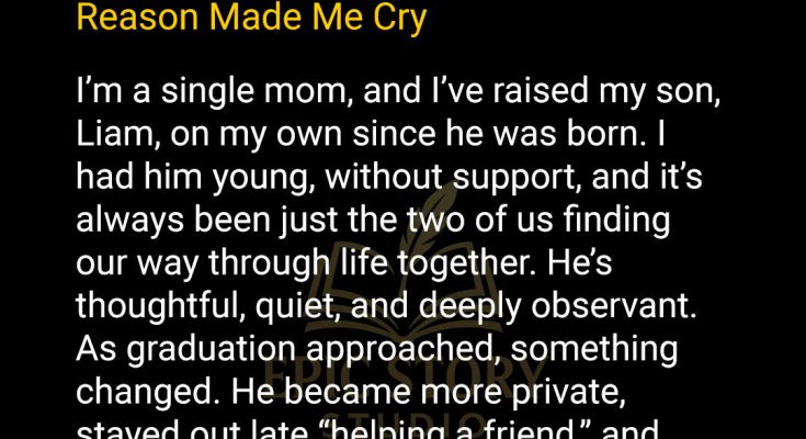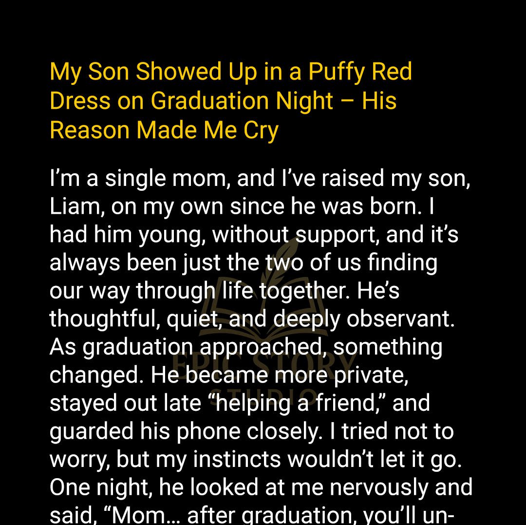 I raised my son alone from the day he was born. In the weeks before graduation, he became secretive, disappearing for hours. Then on graduation night, he walked into the auditorium in a puffy red dress. The room erupted in laughter. What he said next silenced everyone.