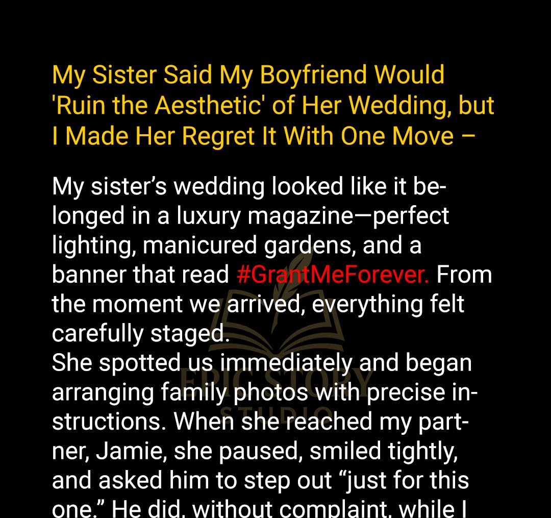 At her wedding, my sister told me my boyfriend couldn’t be in the family photos because he’d “ruin the aesthetic.” I bit my tongue then, but what she did at the reception was the last straw! In one move, I made sure she’d regret her cruelty.