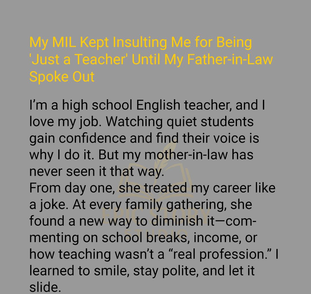 “So, Emily,” she said, tilting her glass toward me, “how’s… the classroom life? Still shaping young minds?”