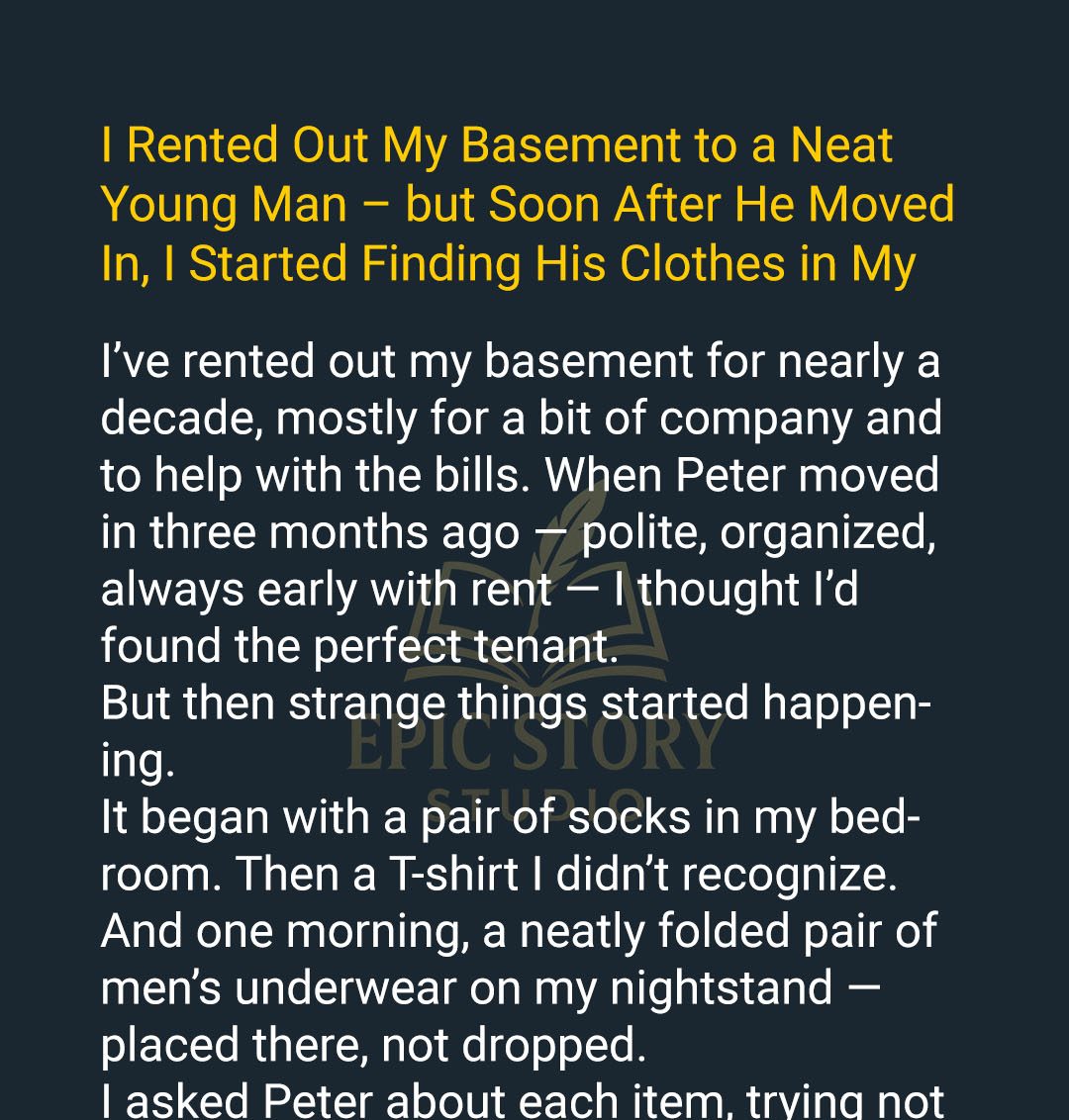 I’ve been renting out my basement for nearly a decade now. The extra money helps, but honestly, it keeps the loneliness away, too. My new tenant seemed perfect. He was polite, quiet, and always early with rent. Then, his clothes started appearing in my bedroom, and I began questioning my own sanity.