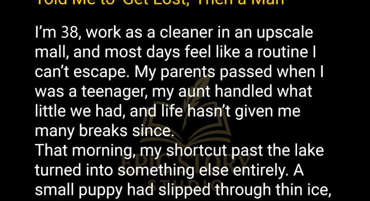I was already late for another thankless shift when a scream tore across the frozen lake. A puppy was drowning under cracked ice — and I wasn’t about to let it die. Saving it cost me my job, but the stranger who stepped in front of me changed far more than my morning.