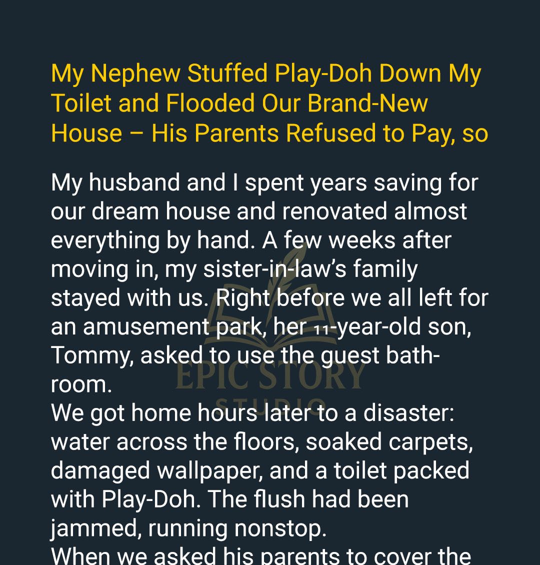 My Nephew Stuffed Play-Doh Down My Toilet and Flooded Our Brand-New House – His Parents Refused to Pay, so I Taught Them a Lesson Myself