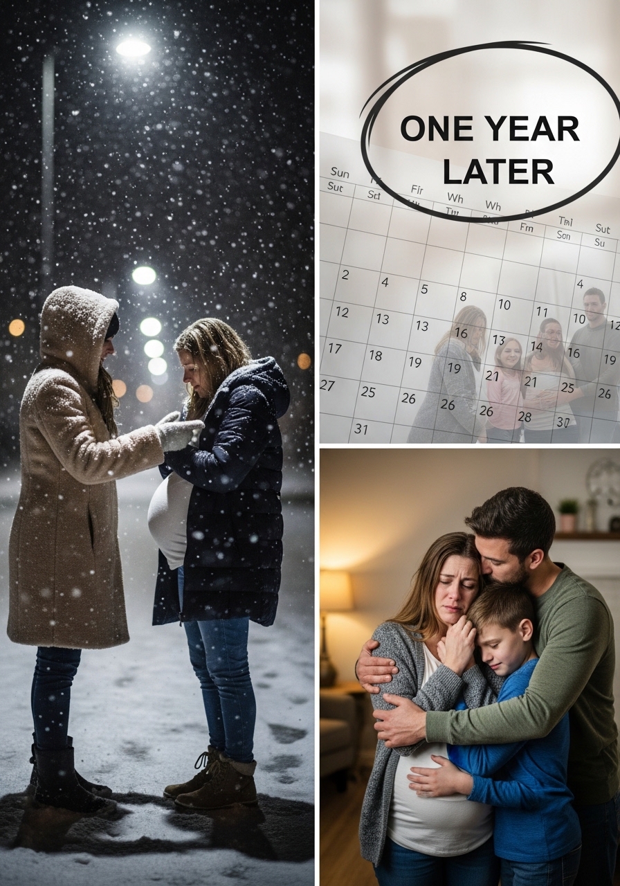 She couldn’t have been older than seventeen. Maybe younger. Her hair was tangled beneath a thin hoodie, her skin pale, lips trembling from more than just the cold. One hand rested protectively over her swollen belly.