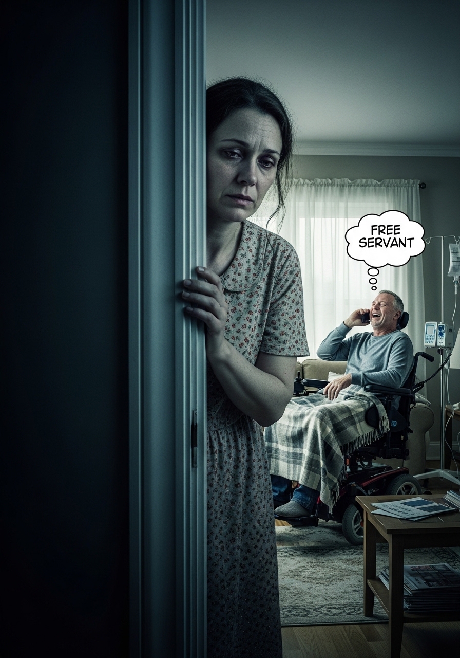 After Five Years of Lifting Him, Cleaning Him, and Being His Full-Time Nurse, I Overheard My Paralyzed Husband Laughing and Calling Me His “Free Servant”