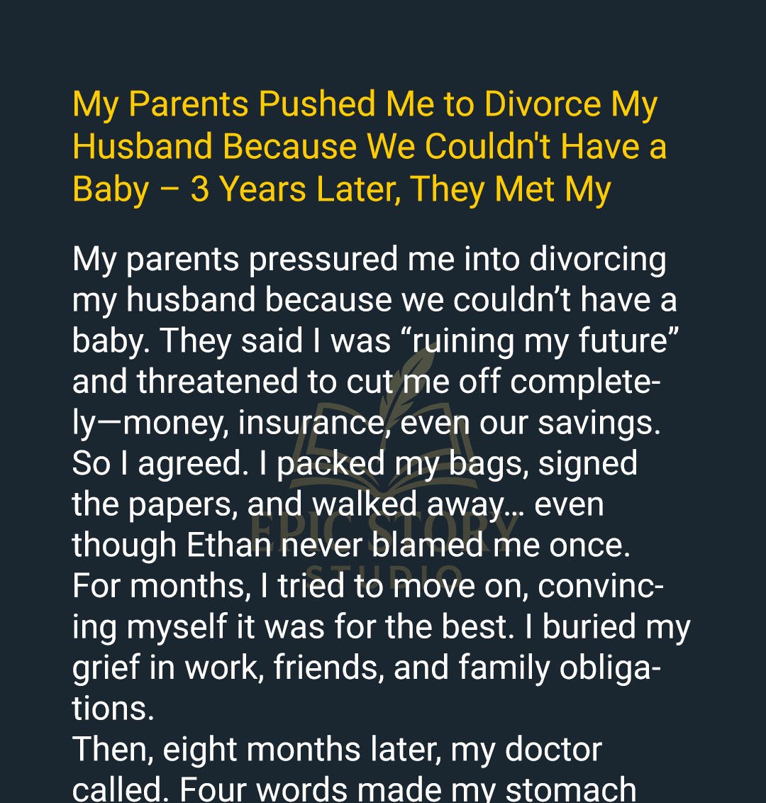 For two years, we tried to build a family. What we didn’t know was that the real threat wasn’t infertility — it was pressure disguised as love. And when my parents gave me a choice, I made the wrong one.