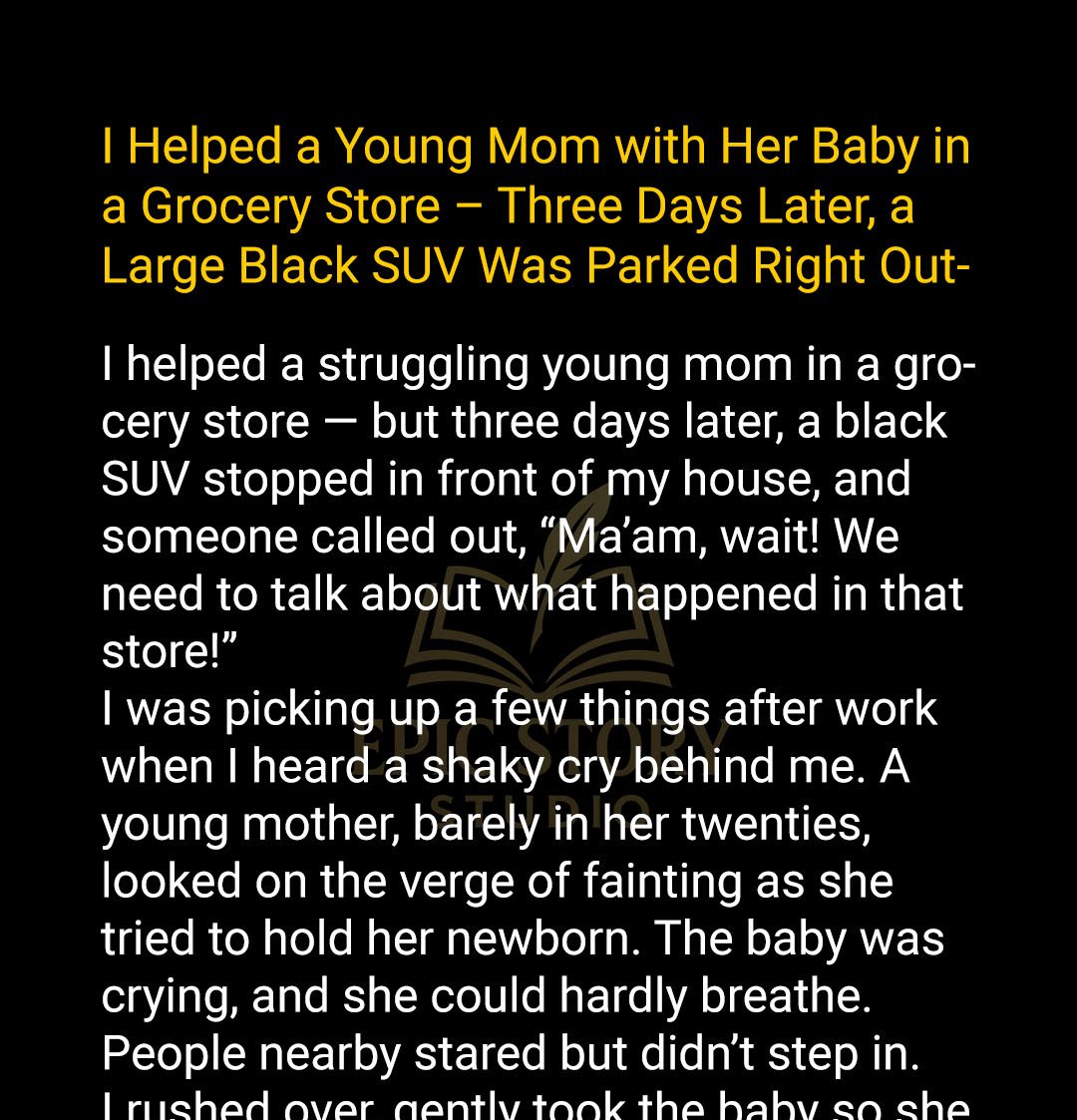 I Helped a Young Mom with Her Baby in a Grocery Store – Three Days Later, a Large Black SUV Was Parked Right Outside My House