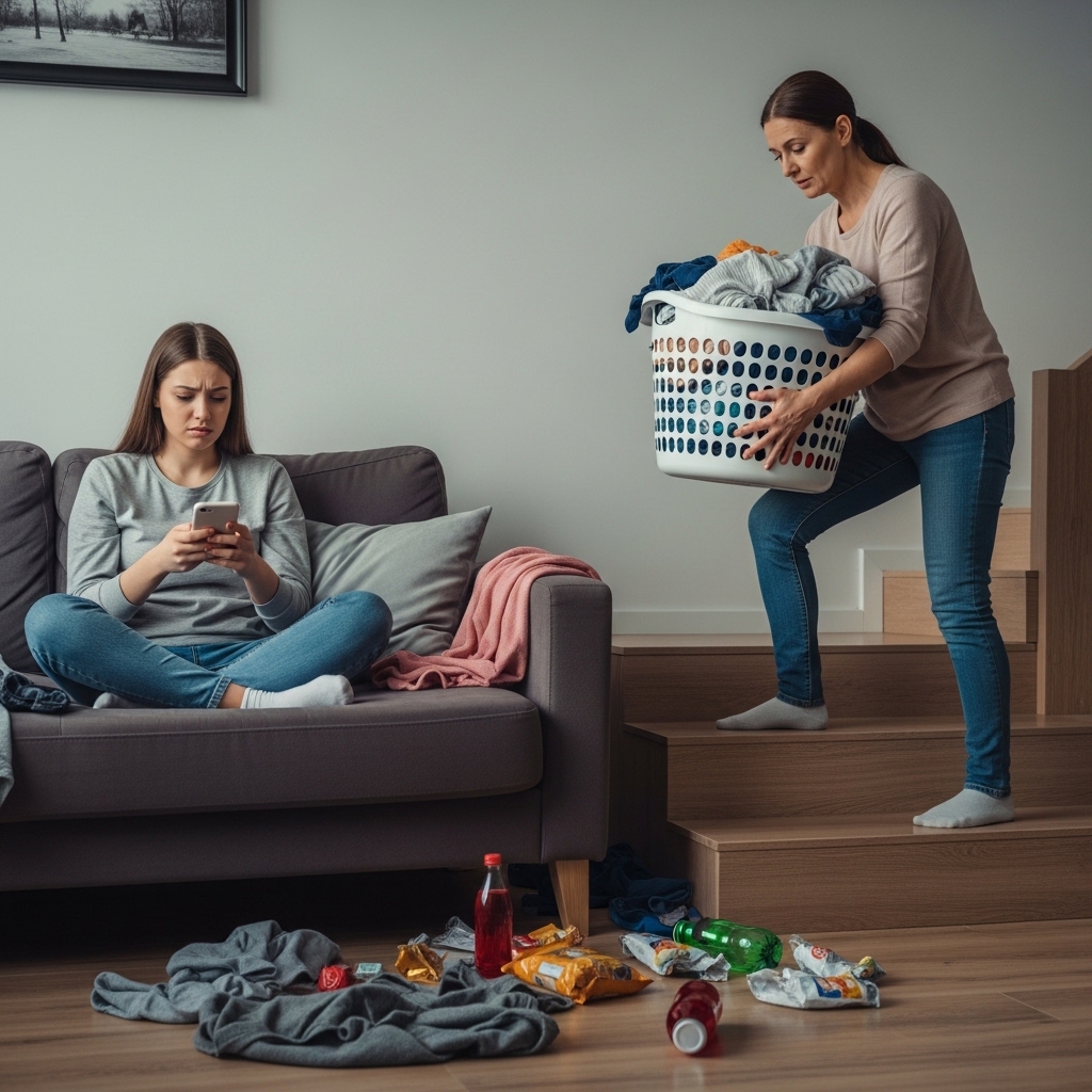 She slams doors, leaves dishes in the sink until they grow mold, scrolls on her phone while I vacuum around her feet, and rolls her eyes when I mention homework or chores. She won’t even watch her little brother for twenty minutes so I can shower without worrying he’ll burn the house down.