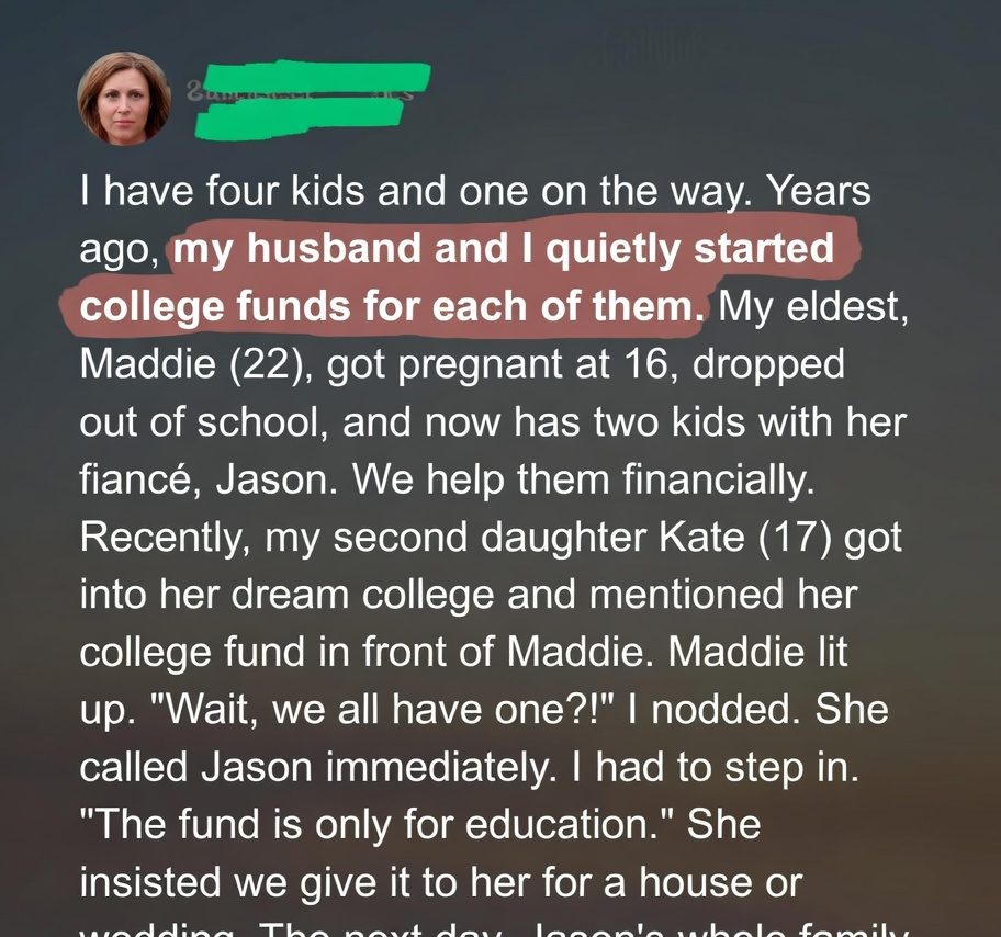 That night, Emily texted: “Think about it. You’ll probably remarry someday. Don’t be selfish!”