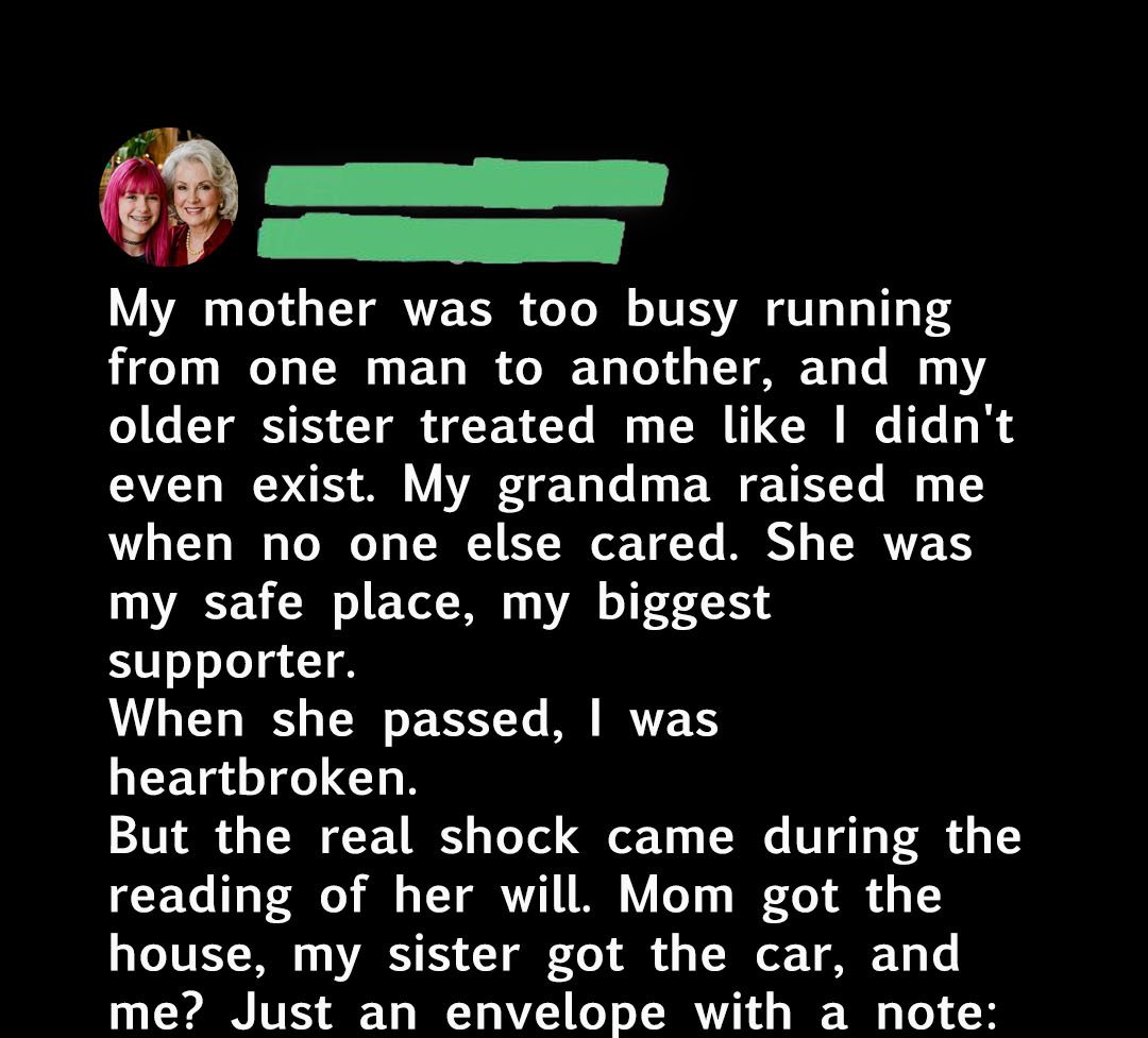 When my grandmother, Grace, passed away, I expected her will to reflect the deep bond we had shared. She had raised me from the age of six, stepping in when my mother and sister were too distracted to notice I was slipping through the cracks. Grandma gave me the stability I desperately needed — handwritten lunch notes, front-row cheers at every school event, and quiet encouragement whenever I doubted myself.