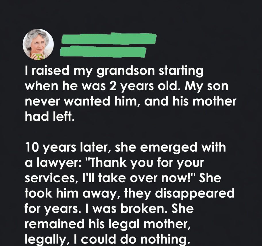Some bonds don’t fade, no matter how much time passes or how far people are separated. Real love—especially the kind built day by day—leaves a mark that never truly disappears. My story is one of those. I raised my grandson like my own child… and then lost him. For years, all that remained was silence—until the day someone came back.