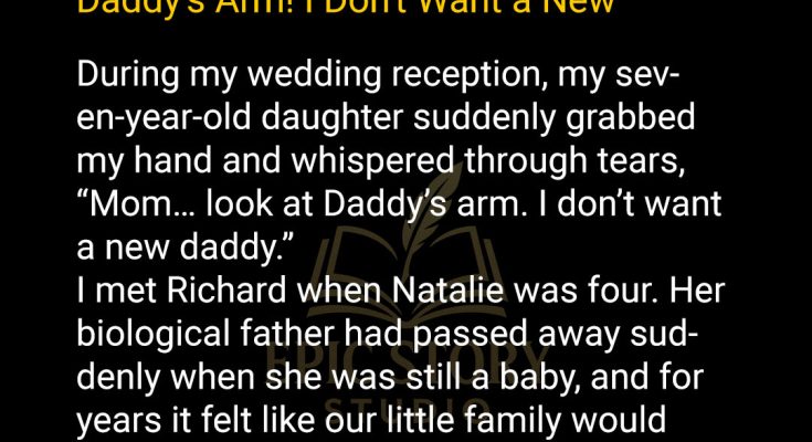 “Mom,” she whispered, barely audible over the music. “Look at Daddy’s arm. I don’t want a new Daddy. Please.”