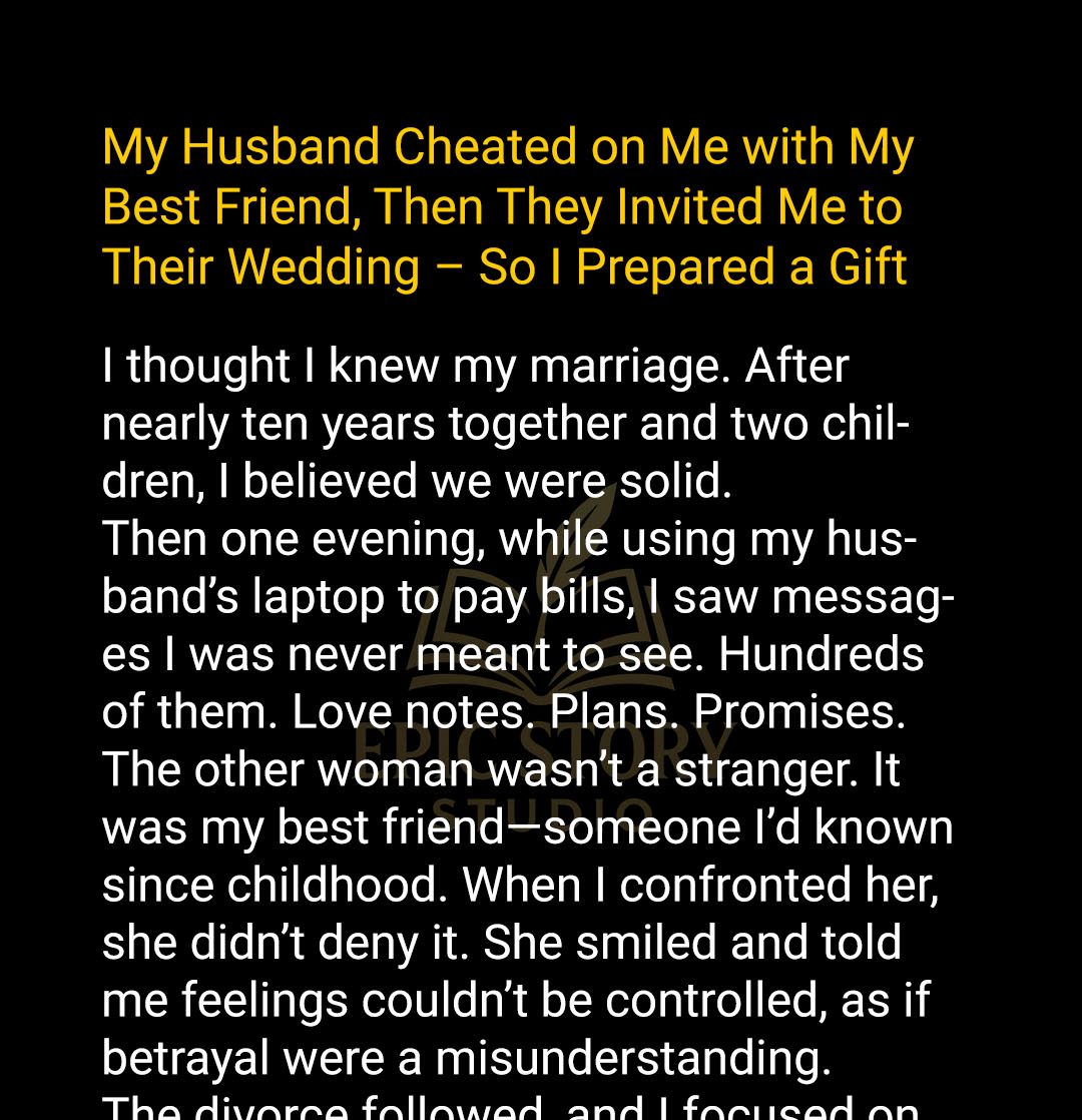 When Sarah is invited to the wedding of her ex-husband and ex-best friend, she chooses grace over chaos, or so it seems. In a story about betrayal, resilience, and the power of quiet truth, one woman brings a gift that no one saw coming… and no one will ever forget.