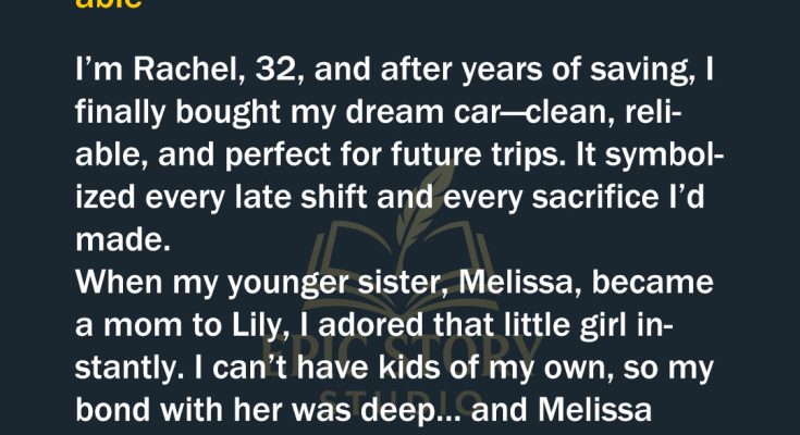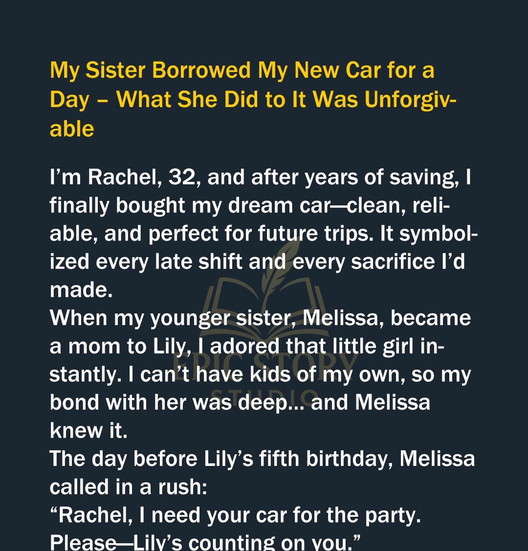 “Your car,” she repeated, like I had forgotten I owned one. “Come on, Rach. You know my car is falling apart. I also can’t fit Lily’s friends, gifts, and all the other birthday necessities. Yours is perfect. And Lily’s already going to be crushed that you’re not coming. The least you can do is let us use your car.”