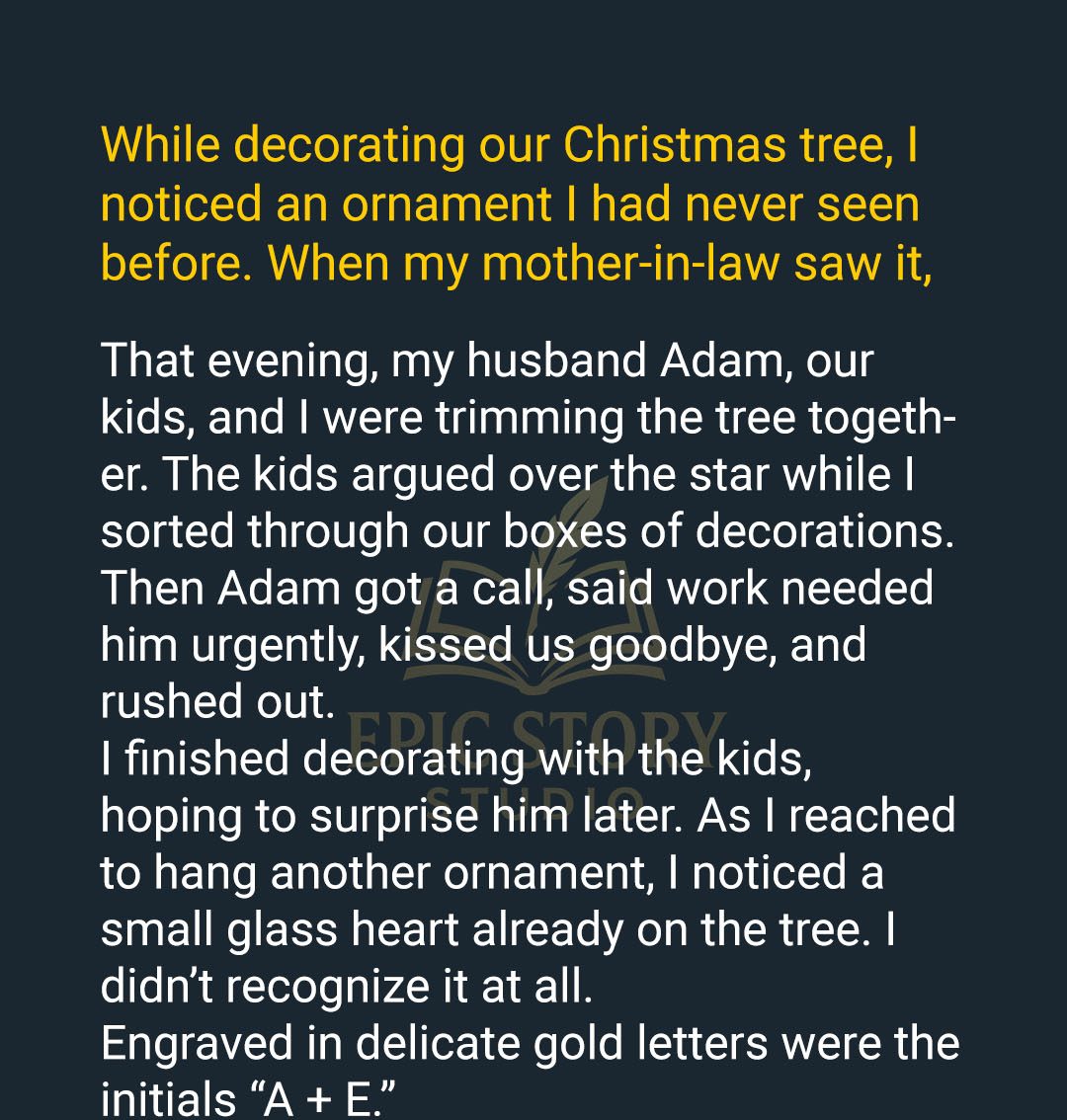 Just before Christmas, a single item tucked deep in the branches of our tree stopped me cold. What started as a cozy night of decorating unraveled a secret my mother-in-law had kept hidden for years.